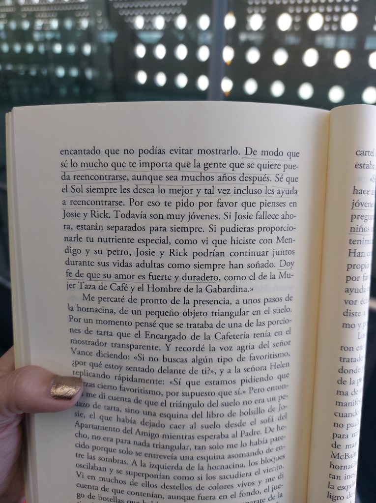 “De modo que sé lo mucho que te importa que la gente que se quiere pueda reencontrarse, aunque sea muchos años después. Sé que el Sol siempre les desea lo mejor y tal vez incluso les ayuda a reencontrarse”.